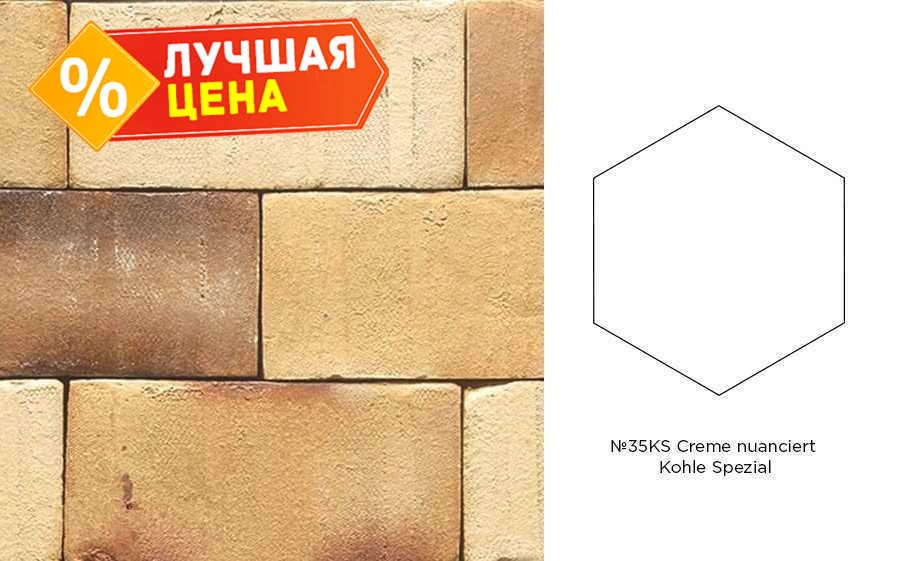 Клинкерная брусчатка Muhr №35KS Creme nuanciert Kohle Spezial, гексагон 200x20 мм