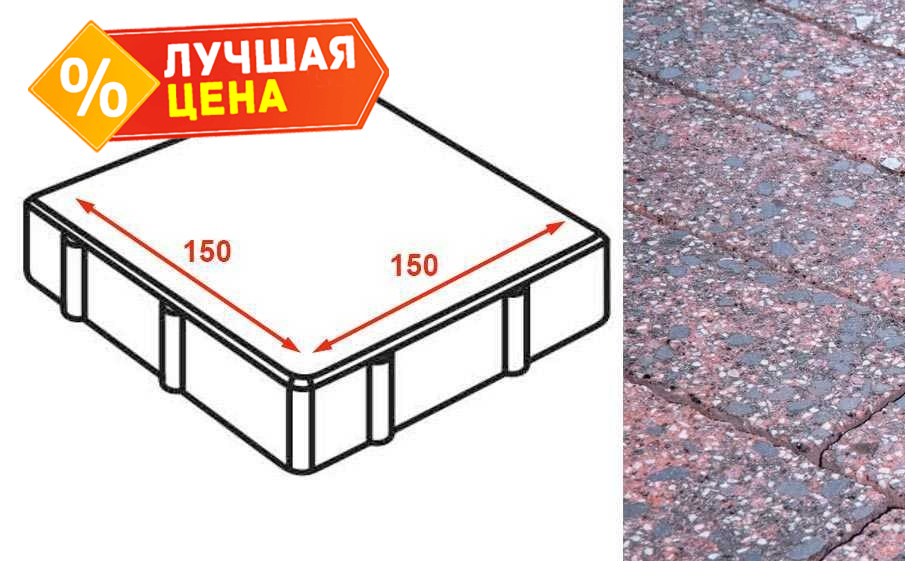 Плита тротуарная Готика Granite FINERRO, квадрат, Дымовский 150x150x80 мм