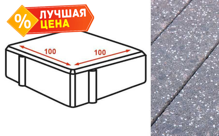 Плита тротуарная Готика Granite FINERRO, квадрат, Ильменит 100x100x80 мм